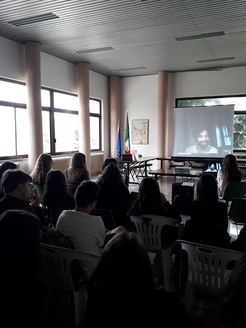 ISOLA DEL GRAN SASSO – Sorriso rassicurante, simpatia coinvolgente e bellezza dirompente. É il ritratto di Simone Riccioni, giovane attore e produttore del cinema italiano, che è stato ospite “virtuale” dell’Istituto comprensivo di Isola del Gran Sasso-Colledara. Riccioni, infatti, ha dialogato con i ragazzi delle classi terze della scuola secondaria di primo grado attraverso una diretta via Skype nell’ambito del progetto della web radio della scuola che ha scelto l’artista marchigiano per il suo impegno nel sociale.