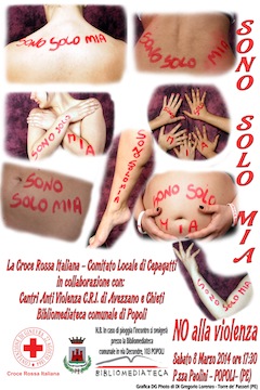 POPOLI(PE) – Una giornata ideata dai Volontari della Croce Rossa di Popoli, con lo scopo di sensibilizzare su una tematica che purtroppo e’ sempre più presente nella nostra società: la violenza sulle donne.La violenza maschile, infatti, è la prima causa di morte per le donne in tutta Europa e nel mondo. Nel nostro continente ogni giorno sette donne vengono uccise dai propri partner o ex partner. Sono 128 le donne uccise in Italia nel 2013, di età compresa tra i 15 e gli 89 anni, nonostante le ultime leggi emanate.