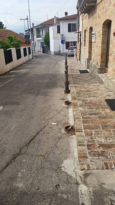 «Le transenne che fiancheggiano il muro di cinta», commenta Fabiola Speranza, «possono essere oggetto di pericolo e ostacolo per la circolazione veicolare sulla carreggiata stradale, già estremamente stretta. Intendo sollecitare, inoltre, la riparazione delle colonnine metalliche di delimitazione installate davanti alla delegazione comunale in via Tevere (appartenente allo stesso edificio del Centro Anziani), che sono danneggiate e possono provocare pericoli per i pedoni e i veicoli».
