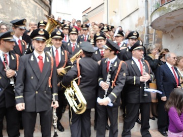 Seguendo percorsi diversi, convergono, nei vicoli che si aprono sulla piazza principale, le statue della Maddalena, di S. Giovanni Evangelista, della Madonna e del Salvatore. La Maddalena incontra per prima Cristo Risorto e dopo averlo salutato corre ad avvertire, sull’altro lato della piazza, S. Giovanni; insieme si recano a salutare Gesù e subito dopo dalla Madonna che appare su un altro lato tutta coperta di gramaglie.