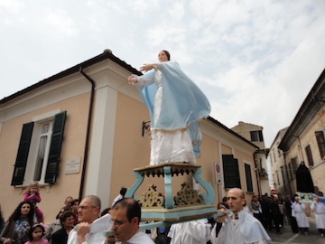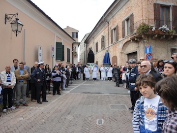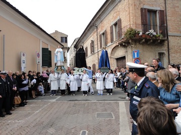SPOLTORE (PE) – Anche quest’anno, a Spoltore, nella giornata di Pasqua si è svolta la Sacra Rappresentazione “ La Madonna che Corre”. Dopo la Santa Messa, in Piazza D’Albenzio si è rinnovato il tradizionale rito che rievoca la Resurrezione di Cristo, e l’incontro con la Madre. Questa antica ed importante tradizione, con alcune modifiche dovute a circostanze locali, la mattina di Pasqua si svolge a Sulmona e a Spoltore.