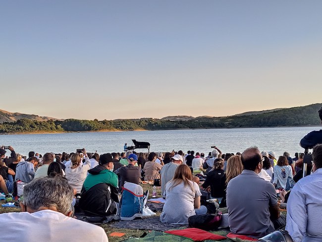 CAMPOTOSTO – Scommessa vinta per Abruzzo dal Vivo 2020 che ieri sera ha dato vita ad una vera e propria magia sulle rive del Lago di Campotosto dove un pubblico incantato ha assistito al concerto di Stefano Bollani che ha suonato, su piattaforma sull’acqua al calar del sole, Piano Solo, improvvisando brano dopo brano.