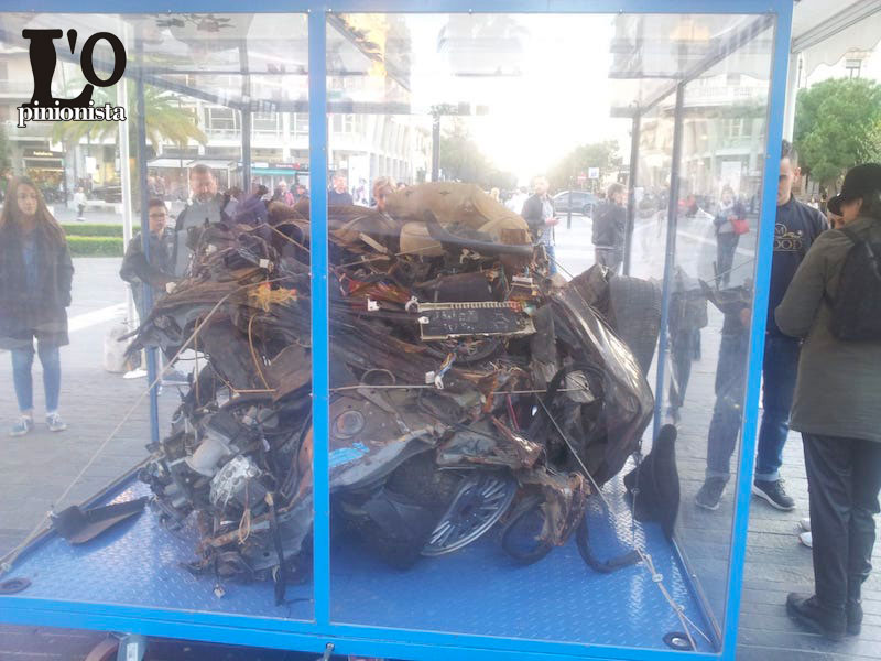 PESCARA – Torna in città la Quarto Savona 15 esposta oggi in piazza della Rinascita. I resti dell’auto di scorta di Giovanni Falcone è la memoria di fatti fra i più tragici della storia italiana. La “Memoria in viaggio” è stata accolta da autorità cittadine e tanti giovani e giovanissimi, a cura del Premio Borsellino.