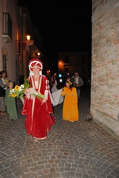 ’Università fermana di Grottazzolina, di San Severino Marche, di Acquaviva Picena e della Quintana di Ascoli Piceno e L’Aquila. A seguire il Sindaco di Tortoreto (Generoso Monti) nelle vesti del capitano del popolo e tutta la Giunta Comunale (il Vice Sindaco Domenico Piccioni e gli Assessori: Alessandra Richi, Luigi Ripani, Renato Chicchirichì e Vito Tartarelli) con il Presidente del Consiglio Comunale (Giandomenico Pinto), tutti rigorosamente in costume medievale nell’interpretazione di magistrati. Nel corso della serata e con il contributo di numerose telecamere che hanno riportato in diretta le immagini sul maxi schermo approntato nella parte alta del borgo, si sono alternati vari spettacoli di giocolieri, trampolieri e figuranti che hanno inscenato epiche battaglie all’arma bianca. Era presente anche la Martina Sciomenta de L’Aquila, vincitrice del primo concorso nazionale La più bella del Reame di Acquaviva Picena. Il 28 agosto, anche Tortoreto parteciperà alla Perdonanza Celestiniana de L’Aquila. Per la prima volta, dopo oltre un decennio, sono tornati a sfilare il Palio delle Torri di Mosciano Sant’Angelo, non si esclude che il Palio torni agli antichi splendori. Gabriele Barcaroli e Lidia Ciccarelli, dopo tre anni, dovranno lasciare lo scettro alla nuova coppia di Baroni che verranno scelti in un apposito bando nel 2014. Da quest’anno l’Associazione, per autofinanziarsi ha scelto di fare un