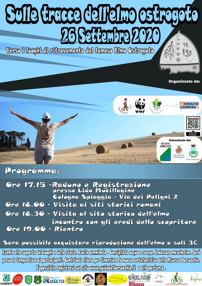 ROSETO DEGLI ABRUZZI – Sabato 26 Settembre alle 17.15 inizierà l’evento “Sulle Tracce dell’elmo” una escursione con focus sulla storia romana, catelli, monasteri, necropoli presenti nella Riserva Borsacchio.