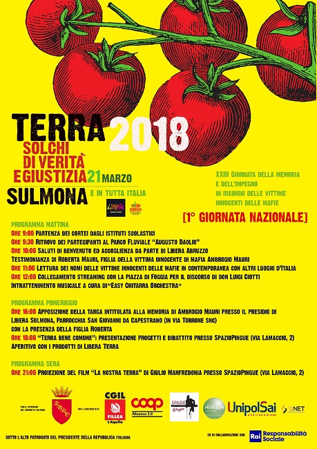 La Giornata del 21 marzo, per il suo alto valore e riconoscimento a livello nazionale e locale, ha ricevuto il patrocinio del Presidente della Repubblica e del Comune di Sulmona e la collaborazione della Rai – Responsabilità Sociale.