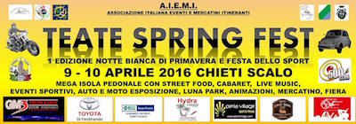 CHIETI – L’Assessore al Commercio e alle Attività Produttive, Carla Di Biase e l’Assessore alle Manifestazioni e allo Sport, Antonio Viola, rendono noto che sabato 9 e domenica 10 aprile 2016, a Chieti Scalo si svolgerà la manifestazione “Teate Spring Fest 2016. Notte Bianca di Primavera e Festa dello Sport” a cura di A.I.E.M.I. – Associazione Italiana Eventi e Mercatini Itineranti – in collaborazione con il Comune di Chieti che, per l’occasione, garantirà il supporto logistico.