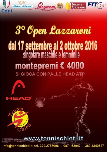 CHIETI – Si conclude oggi, sui campi del Tennis Chieti il III Torneo Open Lazzaroni, iniziato il 17 settembre 2016.