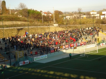 I rossoblù attaccano, sfiorando il gol del 4-3 su una clamorosa disattenzione di Farò, con il portiere teramano che viene salvato dal palo, dopo una clamorosa leggerezza, ma, il gol è nell’aria ed arriva puntuale tre minuti dopo. Il neo acquisto Di Rito firma la sua personale doppietta all’esordio sfruttando una bella triangolazione in area con Di Vicino e riaprendo,così, una partita che sembrava ormai chiusa. I rossoblù chiudono in 9 per l’espulsione di Moscarino (al 44’st frasi ingiuriose al guardalinee) e sfiorano il pari in un finale da batticuore: sugli sviluppi dell’ottavo corner per i rossoblù, il pallone giunge a Mengo che, da posizione defilata,con un tiro al volo sfiora il palo destro per il sollievo dei tifosi teramani.