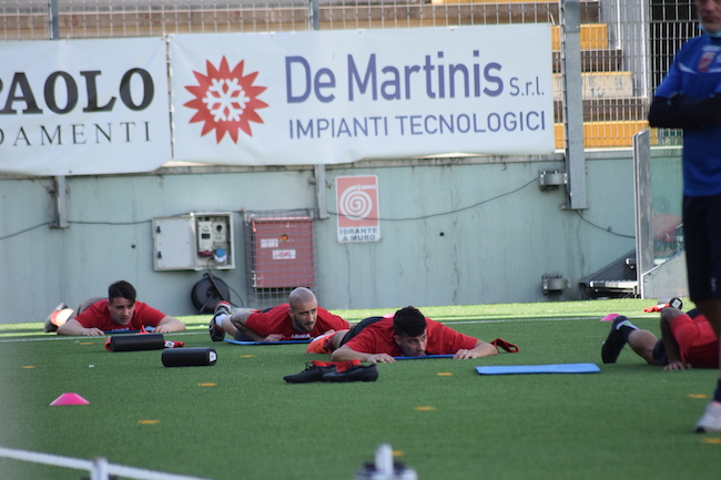 Sotto lo sguardo attento del preparatore atletico Puleo, i ragazzi di mister Di Mascio sono stati impegnati in attivazione funzionale, esercitazioni tecniche, partita a metà campo e lavori di potenza aerobica.