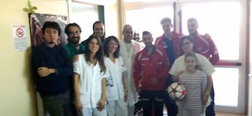 ATRI (TE) – Nella tarda mattinata di ieri visita di una delegazione della Teramo Calcio al Centro di riferimento regionale per la Fibrosi Cistica dell’Ospedale di Atri (TE). Presenti i giocatori Roberto Masullo, Marco Perrotta e Mirco Petrella, accompagnati dall’addetto stampa Marco De Antoniis, Gli stessi, a nome della società biancorossa, hanno consegnato un pallone autografato ai bambini colpiti da questa patologia e distribuito caramelle e torroni agli altri presenti nel reparto di Pediatria. Splendida accoglienza riservata dai piccoli e dai loro famigliari, nell’ora passata all’insegna della serenità e dell’allegria.