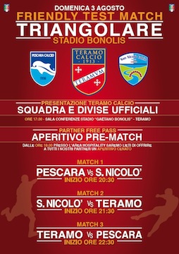 TERAMO – Il Presidente della S.S. Teramo Calcio, Luciano Campitelli, ha fatto sapere che per quanto riguarda il triangolare amichevole previsto per domenica 3 Agosto 2014, che si disputerà presso lo stadio “Gaetano Bonolis” di Teramo, si cercherà di andare incontro alle esigenze dei tifosi teramani di fede biancazzurra. Queste le parole dello stesso: