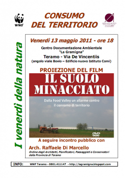TERAMO – Si terrà oggi,13 maggio,alle ore 18.00, a Teramo , presso il Centro Documentazione Ambientale “La Gramigna”, in via De Vincentiis (angolo viale Bovio – Edificio nuovo Istituto Comi),l’incontro sul tema “Il consumo di territorio”, organizzato dal WWF di Teramo, unitamente all’Ordine degli Architetti, Pianificatori, Paesaggisti e conservatori della Provincia di Teramo.