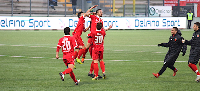 Foto esultanza della squadra biancorossa, fonte sito ufficiale Teramo Calcio