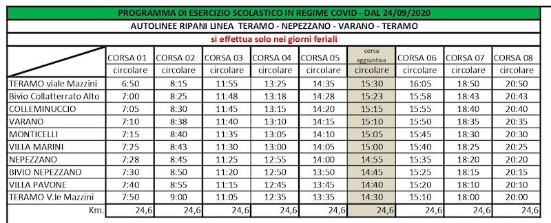 TERAMO – Possiamo chiamarle “Corse Covid” e sono tutte quelle che l’assessore alla Mobilità Maurizio Verna ha concordato con i gestori del servizio di Trasporto Pubblico Locale, per rispondere alle esigenze sorte con l’apertura delle scuole.