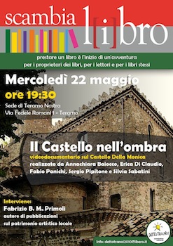 TERAMO – L’ass. culturale “Detto tra noi” presenta prima del consueto Scambialibro, il documentario girato recentemente dagli studenti di Scienze della Comunicazione sul Castello della Monica di Teramo.Dunque l’appuntamento mensile con il libro e la lettura, ormai un classico dell’offerta culturale teramana, “adotta” il castello della Monica e invita alla sua riscoperta.