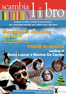 TERAMO – Mercoledì 18 dicembre ,alle ore 19.30, presso la sede di Teramo Nostra in via Romani n°1,si terrà l’appuntamento di dicembre con lo Scambialibro dell’associazione culturale Detto tra noi.