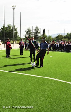 TOCCO DA CASAURIA (PE) – È stato inaugurato,ieri mattina , il nuovo campo in erba sintetica dell’impianto sportivo comunale “Pino Smarrelli” di Tocco da Casauria. A tagliare il nastro della nuova struttura è stato il sindaco, Luciano Lattanzio, accolto da una festante delegazione di studenti delle scuole primaria e secondaria di primo grado che hanno assistito all’inaugurazione.