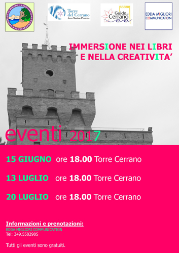 PINETO (TE) – Torna a Pineto, il cartellone “Immersione nei libri e nella creatività” organizzato a Torre Cerrano dalla Edda Migliori Communication e dall’Associazione Pinetese Commercianti e Artigiani con AMP Torre del Cerrano ed Associazione Guide del Cerrano.