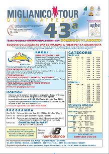 PESCARA – La 43ª edizione della Miglianico Tour partirà domenica 11 agosto alle 18.15 e ripercorrerà lo storico circuito di 9 km che gli atleti dovranno ripetere due volte.Un appuntamento importante per il mondo del podismo che vede ogni anno circa 1000 iscritti con nomi interessanti di caratura internazionale, basta ricordare che il record maschile della gara è di Sanga Kimutai Philimon (Kenia) con 51′ 11”00 e quello femminile di Ait Salem Souad ( Algeria) con 58’26”00.La Miglianico Tour promuoverà quest’anno un appuntamento di sport solidale, abbinando all’evento agonistico un progetto benefico, devolvendo 1 euro per ogni iscritto oltre al 20 % del ricavato della lotteria abbinata alla maratona all’AGBE, Associazione Genitori Bambini Emopatici.