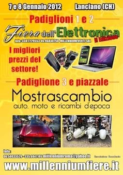 LANCIANO (CH) – Il 7 e l’8 gennaio torna a Lanciano, presso l’Ente Fiera Lanciano in Località Iconicella, la Fiera di elettronica e auto – moto – ricambi d’epoca, ma con l’importante novità dello spazio dedicato interamente al Millennium Mare.