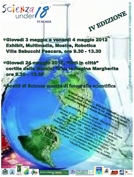 PESCARA – Si svolgerà dal 3 al 4 maggio, a Villa Sabucchi , la manifestazione finale di “Scienza under 18”, il festival della scienza dedicato al sapere scientifico della scuola, alla quarta edizione per quanto riguarda Pescara . Si tratta del momento clou del Progetto, del momento di maggiore visibilità perché le attività elaborate e svolte in classe sono presentate al pubblico con varie modalità.Gli alunni si sentiranno davvero protagonisti nell’esporre e raccontare i risultati e i metodi di lavoro utilizzati nel corso dell’anno ad altri studenti e alla cittadinanza. Sicuramente un percorso didattico come “Scienza under 18”, che nasce dall’esigenza di avvicinare i ragazzi al mondo delle Scienze , può servire ad attivare la motivazione verso il sapere e l’amore della conoscenza,può aiutare gli alunni ad acquisire una maggiore consapevolezza rispetto a ciò che hanno studiato , oltre che a scoprire e a coltivare i propri talenti. Il Progetto , che si è concretizzato come un’occasione di confronto e formazione per gli insegnanti, anche quest’anno è stato coordinato dalla Scuola secondaria di I grado Rossetti-Mazzini di Pescara.