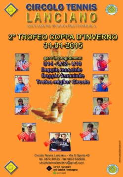 LANCIANO (CH) – Inizia oggi sui campi del Circolo Tennis Lanciano il Torneo di tennis maschile e femminile “Trofeo Coppa d’Inverno”, riservato alle categorie under 10-12-14. Alla manifestazione, giunta alla seconda edizione, partecipano giovani tennisti provenienti da diverse regioni; sono in programma le seguenti gare: