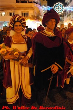 TORTORETO – Oggi,sabato 16 agosto, alle ore 20.00, nel cuore del centro storico di Tortoreto alto, con la sfida dei due rioni storici: Terravecchia e Terranova, si concluderà la XIV edizione del Palio del Barone. La serata inizierà con il corteo storico per le vie del borgo antico. Spalancherà le porte della manifestazione, il maestoso corteo storico di oltre 400 figuranti provenienti da varie parti d’Italia, Marche, Umbria e Abruzzo. Il borgo sarà uno splendido palcoscenico medievale, in una cornice di bracieri, fiaccole e tripudio di bandiere. Aprirà il corteo il gonfalone del Barone con al seguito il gruppo tamburi. Seguiranno, il Sindaco di Tortoreto, Alessandra Lucia Richi, nelle vesti del capitano del popolo e tutta la Giunta Comunale: il Vice Sindaco Massimo Tarquini e gli Assessori: Arianna Del Sordo, Renato Chicchirichì, Rosita Di Mizio e Rosella Di Pancrazio con il Presidente del Consiglio Comunale, Lanfranco Cardinale, tutti rigorosamente in costume medievale nell’interpretazione di magistrati. Da quest’anno, per la prima volta, sfileranno anche i consiglieri di maggioranza e minoranza. Sarà poi la volta del Barone di