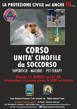L’associazione organizza il secondo corso per conduttori cinofilo, dedicato alla ricerca dispersi in superficie, il corso sarà curato da un addestratore qualificato, tutti gli interessati sono invitati il Giorno 11 APRILE ore 21.00 per ricevere tutte le informazioni e iscrizioni, presso la SEDE del corpo volontari, sita in Via Napoli Palazzetto dello sport di Tortoreto ( vicino campi da tennis ).
