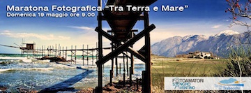 Il blog Terre dei Trabocchi e il gruppo Fotoamatori Sangro Aventino organizzano una Maratona Fotografica che avrà luogo domenica 19 maggio 2013 a partire dalle ore 9.00. La maratona è aperta a tutti, fotoamatori e fotografi professionisti. Tema della maratona fotografica è “Tra Terra e Mare”. L’obiettivo è quello di raccontare e descrivere, tramite fotografie, un tratto unico dove terra e mare si incontrano per diventare un’unica e nuova identità. Avrà quindi come oggetto il territorio delle Terre dei Trabocchi e gli utenti saranno chiamati a fotografare elementi evocativi di questo territorio, che meglio rappresentano le Terre dei Trabocchi ai loro occhi.La Maratona sarà divisa in due manche.