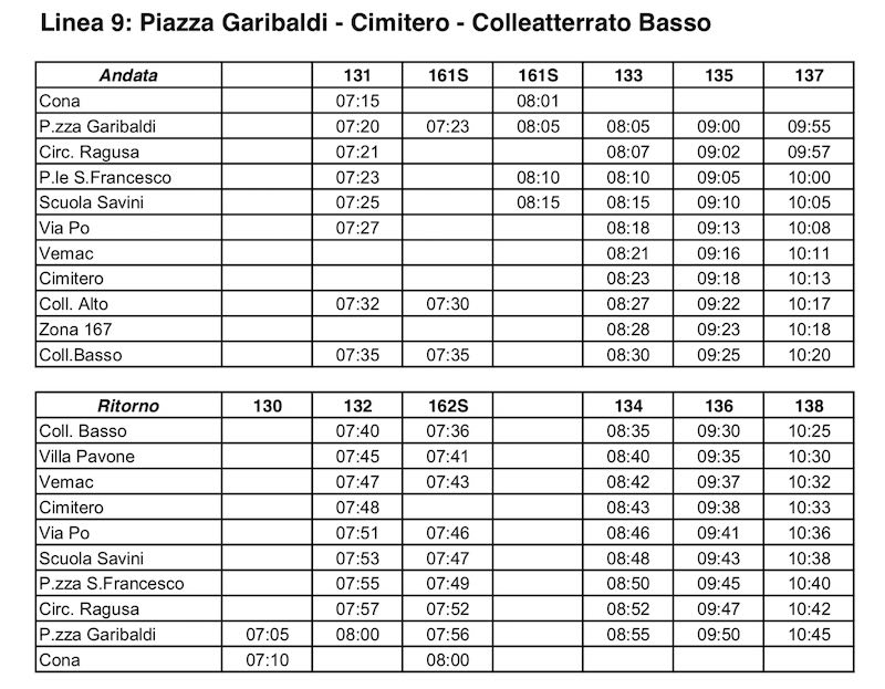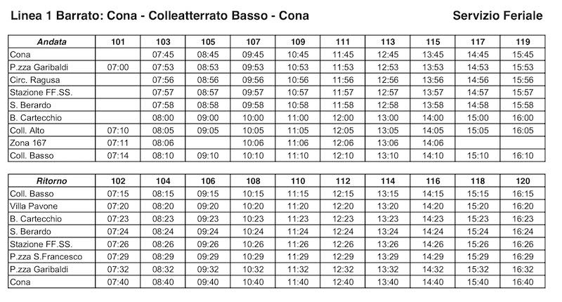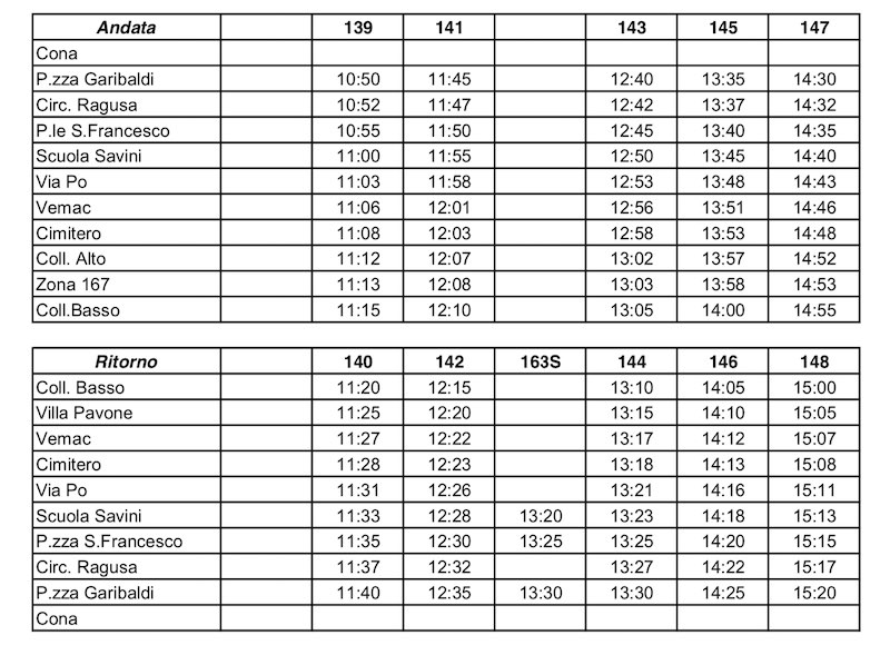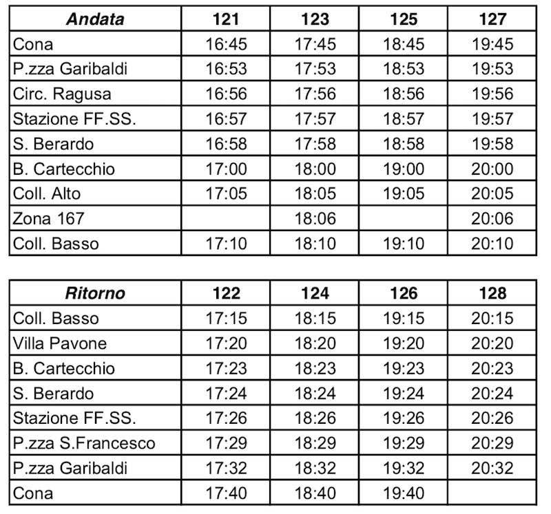 L’atto stabilisce di strutturare il prospetto orario della nuova linea urbana in maniera tale che transiti intorno alle 7:40/7:45 nella frazione di Villa Pavone per poter essere utilizzata dagli studenti che si dirigono verso il centro urbano; la nuova linea urbana viene dotata di corsa bis durante le fasce orarie di punta, principalmente a servizio della popolazione studentesca.
