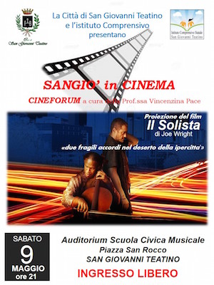 Sabato 9 maggio, nell’ambito della “Primavera alla Civica” per la sezione Sangio’ in Cinema, cineforum a cura della professoressa Vincenzina Pace, ci sarà proiezione del film “Il Solista” di Joe Wright. Interpretato da Robert Downey Jr. e Jamie Foxx e tratto dal libro di Steve Lopez, il film racconta la vera storia dell’incontro tra Nathaniel Ayers, un musicista senzatetto affetto da schizofrenia e Steve Lopez, un giornalista del Los Angeles Times. L’appuntamento è per ore 18 presso l’Auditorium della Scuola Civica Musicale.