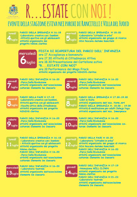 Al contempo, domani prenderà il via la prima tranche di eventi estivi, che si concluderà il 14 luglio. Questa prevederà una serie di iniziative, tutte a titolo gratuito di cui si allega il calendario”.