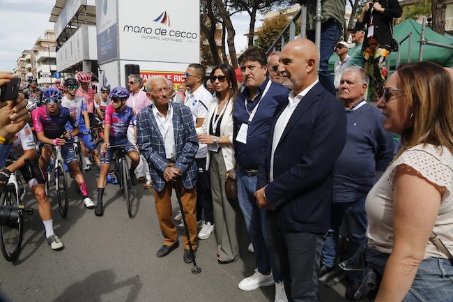 A premiare i tre atleti sul podio per il Comune di Pescara il sindaco Carlo Masci e l’assessore allo sport Patrizia Martelli, il presidente del Consiglio Regionale dell’Abruzzo Lorenzo Sospiri, l’onorevole Guerino Testa, oltre a Daniele Sebastiani, Stefano Giuliani e Dino Renzetti per l’Unione Ciclistica Fernando Perna. Sul palco anche Fabiano Roganti che ha ricevuto dal secondo classificato Alessandro Covi il mazzo di fiori delle premiazioni come dono per il compianto figlio Simone.