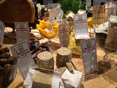 nel padiglione di Coldiretti situato all’inizio del Cardo, in un tripudio di colori e profumi provenienti dalle campagne di tutta Italia, sono state esposte anche le eccellenze abruzzesi quali la mortadella di Campotosto, lo zafferano di Navelli, l’antica saragolla, la colorata carota viola, l’aglio rosso di Sulmona, il marcetto teramano, il più noto Montepulciano d’Abruzzo e il meno noto cordone del frate, nato per caso in un caseificio pescarese e subito apprezzato da chi ricerca i prodotti di nicchia.