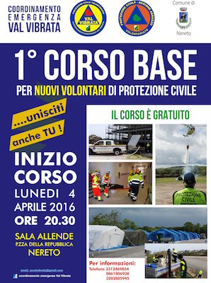 Il Presidente Mauro Di Bonaventura ha ricordato che Fino alle ore 20 di lunedi 4 aprile sono aperte le iscrizioni al corso base per diventare volontari della Protezione Civile, organizzato dal Coordinamento emergenza Val Vibrata