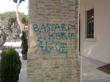 si tratta di un episodio estremamente grave se consideriamo quanto l’amministrazione comunale, ossia la città, ha investito per il risanamento e il recupero di quella struttura che oggi di fatto è la nostra perla più preziosa che tutti ci invidiano. Il fatto è accaduto probabilmente nel cuore della notte, considerando che la struttura è rimasta comunque aperta sino a tardi perché ospitava un evento e alcune mostre d’arte. La scoperta è stata fatta stamane dal Direttore della struttura che, quando è arrivato sul posto per aprire al pubblico l’Aurum, si è trovato dinanzi a scritte offensive, fatte con vernice spray rossa, con la quale erano state imbrattate le colonne e la parete dell’Aurum che si affaccia su via Luisa D’Annunzio.