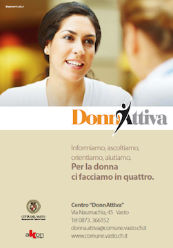 Per ulteriori informazioni è possibile rivolgersi al CENTRO DONNATTIVA di via Naumachia, n. 45_tel. 0873/366152, donna.attiva@comune.vasto.ch.it.