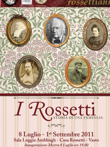 Il Centro Europeo di Studi Rossettiani e la Biblioteca Comunale di Vasto “R. Mattioli” con il patrocinio del Comune di Vasto e della Soprintendenza ai Beni Culturali di Chieti organizzano nei prossimi due mesi estivi una mostra documentaria di manoscritti, autografi e stampe che aiuterà a ricostruire e delineare non solo la storia familiare dei Rossetti, ma soprattutto i percorsi storici e artistici individuali del padre Gabriele, originario di Vasto, e dei quattro figli che, nati dopo il suo esilio londinese, continuarono, ognuno a suo modo, a relazionarsi realmente o idealmente con la patria d’origine.