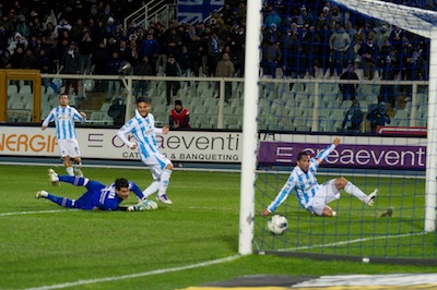 PESCARA – Siamo nel 2011 ma c’è ancora spazio per la poesia, per gli spunti che accendono i cuori degli spettatori sempre più schiavi del tatticismo e soprattutto della fisicità del calcio. L’espressione calcistica del 23 minuto della ripresa regala più che un successo per il Delfino, instancabile amante del bel calcio: è l’emblema stesso della bellezza del calcio. Una gara di fondamentale importanza per gli uomini di Zeman dopo un doppio ed in parte inaspettato ko. Chiudere il 2011 a ridosso dei vertici della classifica cadetta con la consapevolezza di essere in grado di interpretare meglio di altre squadre il gioco, è più che un felice augurio per il prossimo anno per i tifosi, la squadra, il mister e la società tutta intera.