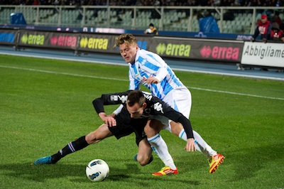 COSÌ IN CAMPO – Nel Pescara assenti Cascione e Gessa per squalifica, al loro posto Kone e Verratti, quest’ultimo in posizione centrale. Confermata la difesa con il rientrante Capuano a far coppia con Romagnoli e sulle corsie esterne Balzano e Zanon. In avanti trio delle meraviglia composto da Insigne, Immobile e Sansovini. La Samp deve far a meno di diversi uomini dal portiere Romero e di Bentivoglio per squalifica oltre alla lista di infortunati come Accardi, Gastaldello, Pozzi ed il più recente Semioli. Modulo speculare nel primo tempo poi nella ripresa spostamento di Foggia a trequartista dietro Bertani e Piovaccari per sfruttare meglio i movimenti tra le linee.