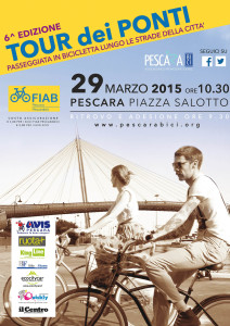 PESCARA – Domenica 29 marzo con ritrovo alle ore 9.30 e partenza alle 10.30 da Piazza Salotto a Pescara ci sarà la sesta edizione del Tour dei Ponti, passeggiata ciclistica che FIAB Pescarabici organizza per promuovere la mobilità ciclistica urbana attraversando i ponti ciclabili della città. La partecipazione è libera e gratuita se non per una piccola quota assicurativa RC e infortuni di 1,00 € per i soci e di 2,00 € per i non soci da sottoscrivere prima della partenza. La passeggiata è adatta anche ai più piccoli, purché accompagnati dai genitori e autonomi nella guida della bicicletta. La peculiarità della manifestazione consiste nel fare una ciclo passeggiata percorrendo le pista ciclabili cittadine, e soprattutto transitando lungo i ponti ciclabili attualmente esistenti: quello del mare, quello di ferro della vecchia ferrovia, quello di legno, più a monte, e quelli del Ponte delle Libertà e Risorgimento, questi ultimi due anche se non ciclabili. Per adesso.