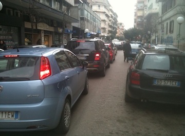 2. gli automobilisti del caffè o dell’acquisto mordi e fuggi continuano con la sosta in doppia fila sul lato nord;
