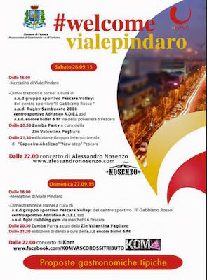 PESCARA – Una festa di due giorni per dare il benvenuto agli universitari, una festa di viale Pindaro con concerti, musica, ristorazione, sport e animazione. Partirà sabato #welcome vialepindaro, la manifestazione promossa dall’amministrazione comunale in collaborazione con l’associazione Heventi che sabato 26 e domenica 27 settembre interesserà il tratto di viale Pindaro da piazza Troilo fino alla confluenza con viale Marconi.