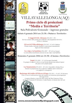 VILLAVALLELONGA (AQ) – L’Associazione D.F.P., in collaborazione e con il patrocinio del Comune di Villavallelonga (AQ) e del Parco Nazionale d’Abruzzo, Lazio e Molise, organizza la prima edizione di MEDIA E TERRITORIO, un ciclo di proiezioni di film, cortometraggi, servizi televisivi, filmati inediti e di repertorio girati a Villavallelonga e in Abruzzo.