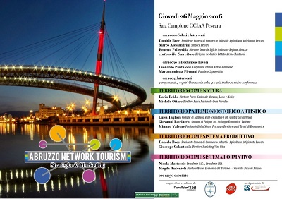 PESCARA – Domani, giovedì 26 maggio, le classi 2a E, 2a F, 3a B e 3a C del corso Turismo, saranno le protagoniste del workshop Abruzzo Network Tourism, in programma dalle 10 alle 13 nella sede della Camera di Commercio di Pescara.