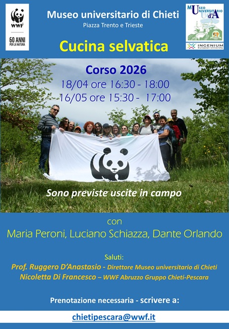 REGIONE – WWF Chieti-Pescara e Museo universitario di Chieti tornano con la terza edizione di “Cucina selvatica”, il percorso dedicato alla scoperta e all’uso consapevole delle erbe spontanee. L’appuntamento inaugurale è fissato per sabato 18 aprile nell’Auditorium del Museo universitario, con un programma rivolto esclusivamente agli adulti e articolato in due incontri in sede e in successive escursioni sul territorio.