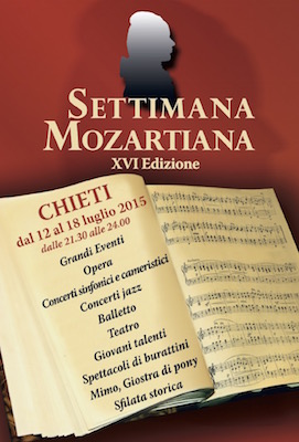 CHIETI – Il Sindaco di Chieti, Umberto Di Primio, questa mattina, con il M° Ettore Pellegrino, Direttore Artistico della Settimana Mozartiana, alla presenza dell’Assessore alle Manifestazioni, Antonio Viola, ha presentato, nel corso di una Conferenza Stampa, la XVI Edizione della Settimana Mozartiana, organizzata dal Comune di Chieti in collaborazione con l’Istituzione Deputazione Teatrale Teatro Marrucino, che si svolgerà dal 12 al 18 luglio 2015. Spettacoli di musica sinfonica, concerti jazz, musica da camera, performance di danza, spettacoli di burattini e incontri culturali si susseguiranno, per un totale di oltre 80 apuntamenti, nel centro storico cittadino.